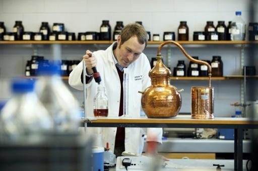 El profesor asistente de destilación, Matthew Pauley, en su laboratorio en el Centro Internacional de Braseado y Destilación (ICBD) de la Universidad Heriot-Watt de Edimburgo, Escocia, el 28 de febrero de 2018. afp_tickers
