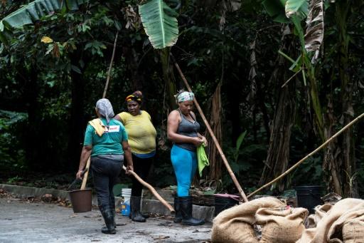 Con botas de caucho y un machete bien afilado, Nidia Chávez se mete a la plantación para cosechar el «mejor» cacao de Venezuela, también llamado en su pueblo el «oro negro» que les da de comer.