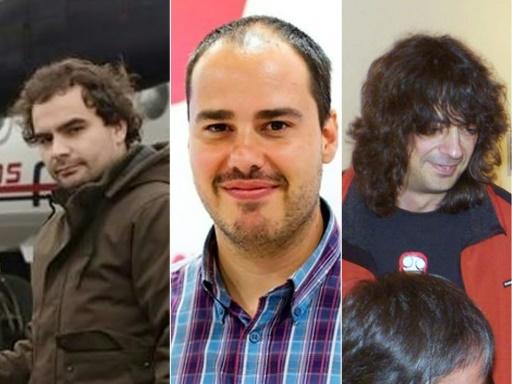Fotocomposición divulgada el 7 de mayo de 2016 con los periodistas españoles (de izq a der) Ángel Sastre, Antonio Pampliega y José Manuel López, liberados luego de casi un año de cautiverio en Siria afp_tickers