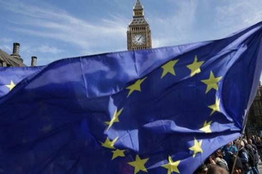 Banderas europeas ante el Big Ben, junto al Parlamento británico, en Londres, en marzo de 2017. El gobierno conservador británico publicó su proyecto para derogar todas las leyes europeas que rigen en el Reino Unido afp_tickers