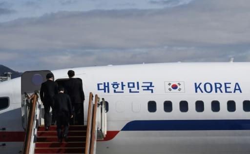 La delegación surcoreana parte del aeropuerto militar de Seongnam, al sur de Seúl, hacia Pyongyang el 5 de marzo de 2018 afp_tickers