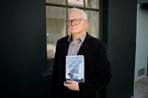 El periodista y escritor Stephen Davis muestra su libro "Operación Caballo de Troya", que investiga el aterrizaje del vuelo de la aerolínea British Airways 149 en Kuwait durante la invasión de Irak en agosto de 1990, el 2 de agosto de 2021 en Londres afp_tickers