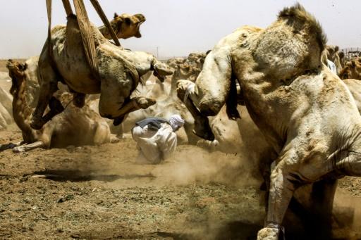 A un lado una grúa levanta a los camellos, uno a uno, hasta varios metros de altura y los deposita en camiones. Sesenta vehículos, capaces de transportar cada uno a 30 animales, partieron durante ese día con rumbo a Egipto, Israel o los países del Golfo.