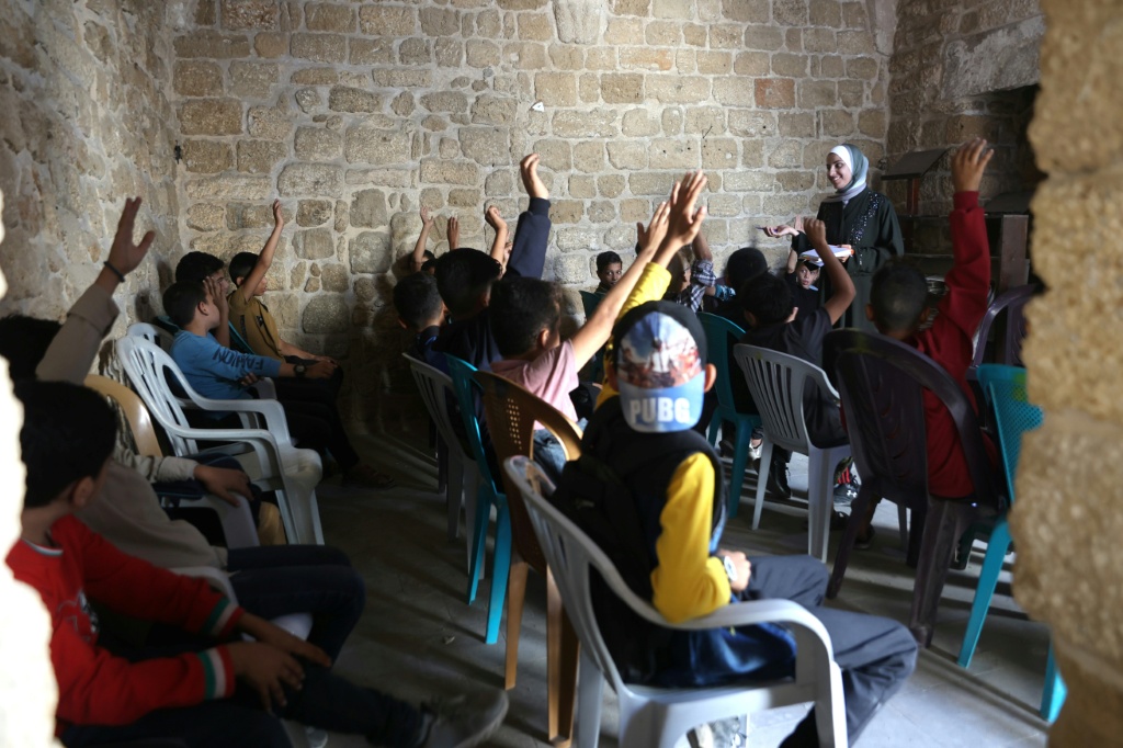 Decenas de alumnos de la escuela Al Hasaina de Nuseirat, en el centro de la Franja de Gaza, retomaron las clases pese al lamentable estado en que quedó el territorio palestino por la guerra, constató AFPTV este sábado.