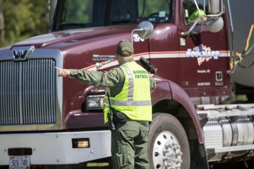 Un agente aduanero de Estados Unidos orienta el paso de un camión cerca de la frontera con Canadá el 1 de agosto de 2018 afp_tickers