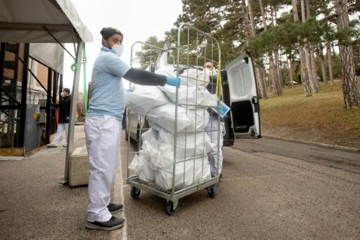En un incesante ir y venir de camiones, cientos de miles de cajas azules llegan cada día a un laboratorio de Viena, símbolo del éxito en Austria de los test de saliva para detectar el covid-19.
