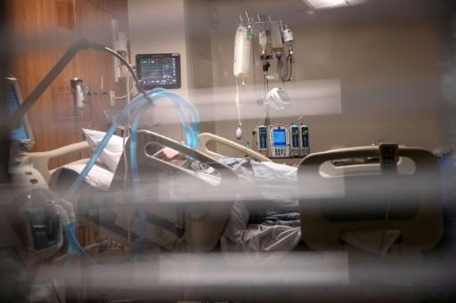Tubos de respiración cuelgan junto a un hombre con COVID-19 en una Unidad de Cuidados Intensivos del Hospital Stamford, el 24 de abril de 2020, en Stamford, Connecticut. afp_tickers