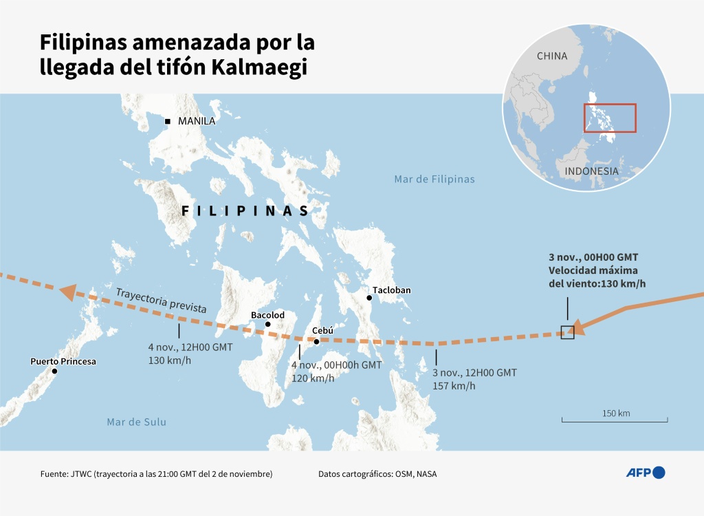 Más de 150.000 personas fueron evacuadas el lunes en las provincias costeras de Filipinas ante la llegada del potente tifón Kalmaegi, que tocó tierra en una región azotada por algunas de las tormentas más mortíferas del país, informaron las autoridades.