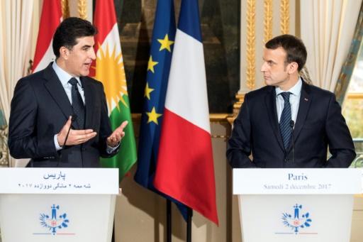 El presidente francés, Emmanuel Macron, pidió este sábado diálogo entre las autoridades iraquíes y los kurdos de Irak al recibir en París al primer ministro de la región autónoma kurda.