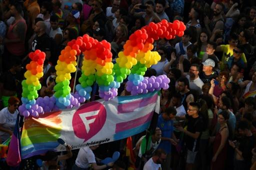 La manifestación conmemoró el 50 aniversario de los disturbios de Stonewall en Nueva York en 1969, que simbolizan el inicio del movimiento moderno por los derechos de los homosexuales.