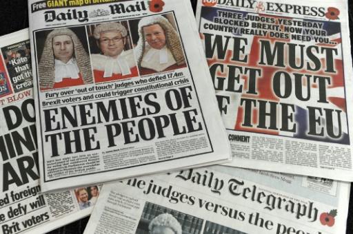 Los diarios tabloides la emprendieron este viernes contra la resolución, titulando «Los enemigos del pueblo», con fotos de los tres magistrados de la Corte en el caso del Daily Mail, mientras que el Daily Telegraph también publicó fotos de los jueces, titulando: «Los jueces contra el pueblo».