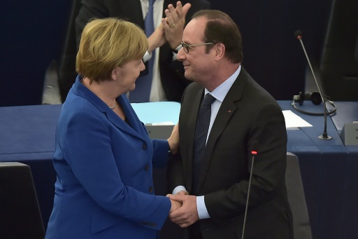 El presidente francés, François Hollande, y la canciller alemana, Angela Merkel, pidieron este miércoles en un histórico discurso conjunto ante la Eurocámara, mayor unidad a la UE para enfrentar la crisis de migrantes y la guerra en Siria.