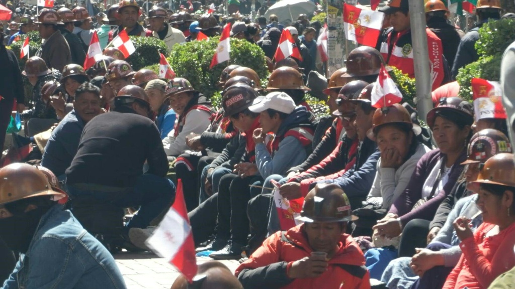 Los mineros marcharon de manera pacífica por La Paz, sede de los poderes Ejecutivo y Legislativo de Bolivia, y bloquearon las principales vías del centro de la ciudad.