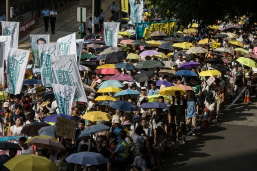 La manifestación fue menos multitudinaria que la del año pasado, que reunió a 510.000 personas que protestaban por la negativa de Pekín de dejar que los hongkoneses elijan libremente a su jefe ejecutivo en las elecciones de 2017.