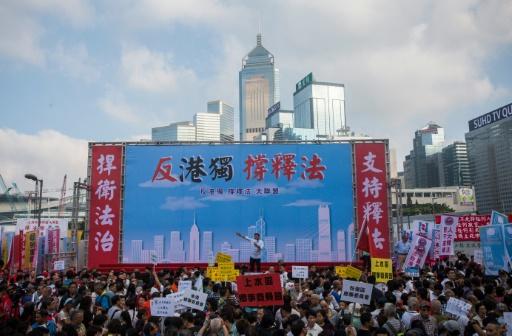 Miles de personas participaron este domingo en Hong Kong en una manifestación de apoyo a China, que acaba de prohibir a dos diputados independentistas entrar en el parlamento de la excolonia británica.
