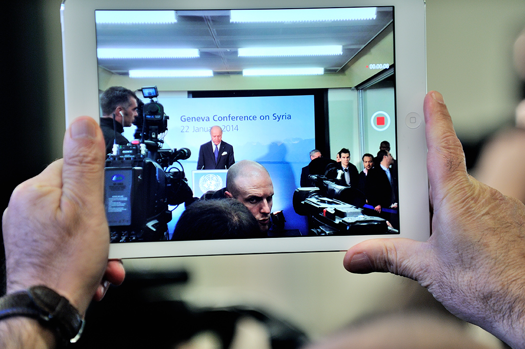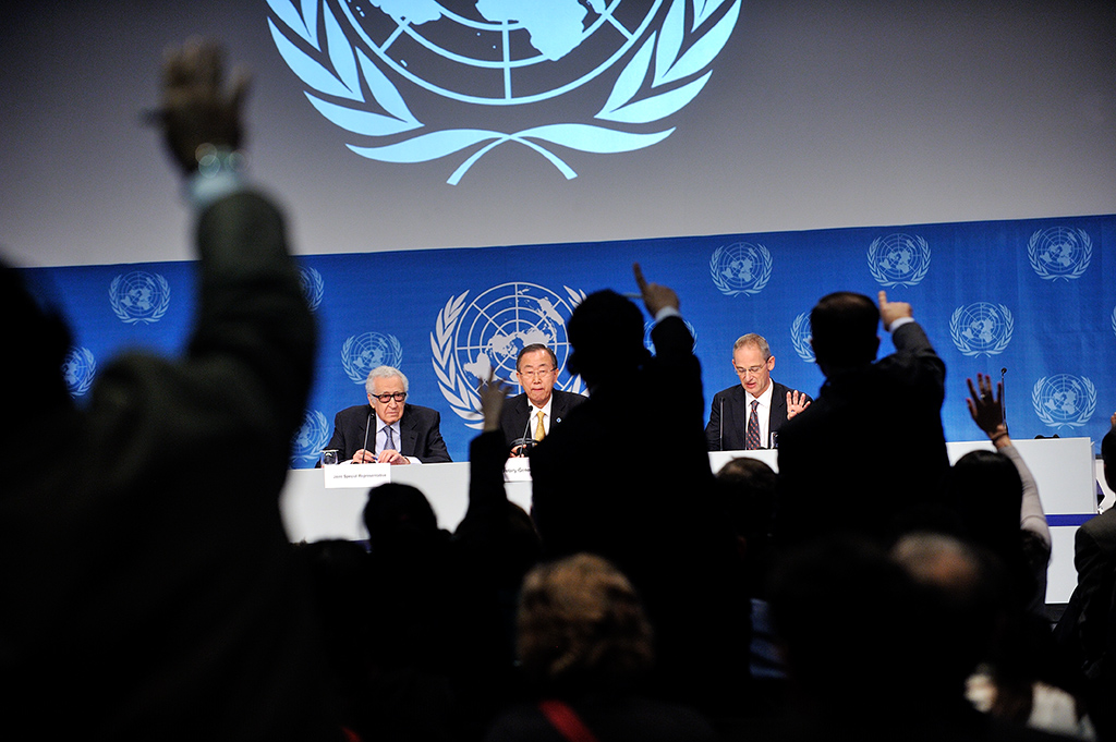 En el primer día de conversaciones que tuvieron lugar en Montreux, el reconocido fotógrafo Mark Henley, dirigió su lente a los participantes de esta cita, el más serio intento hasta ahora, a escala internacional, para poner fin a un conflicto que se ha cobrado más de 100.000 vidas.