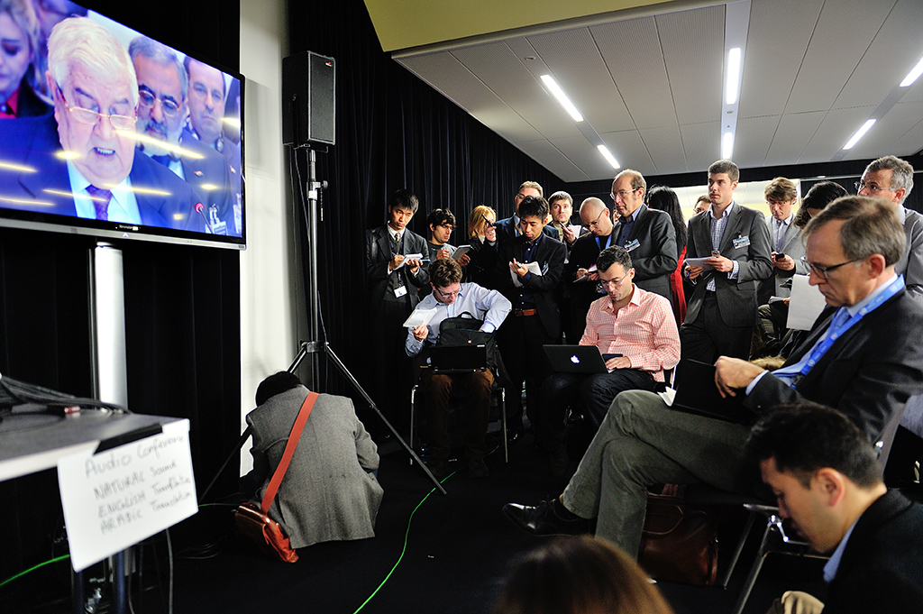 Las delegaciones participantes en la mesa de negociaciones en Montreux se han desplazado al Palacio de Naciones en Ginebra. Se trata de unos 500 delegados de 30 países, incluidos 20 ministros.
