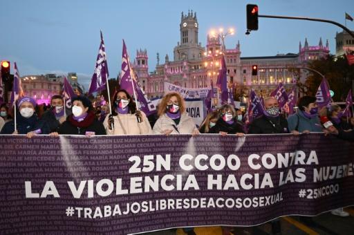 Con banderas violeta y al grito de «ni una menos», miles de personas se manifestaron este jueves en el Día internacional de la Eliminación de la Violencia contra la Mujer en Madrid, en un país donde la lucha contra la violencia machista es una prioridad nacional.