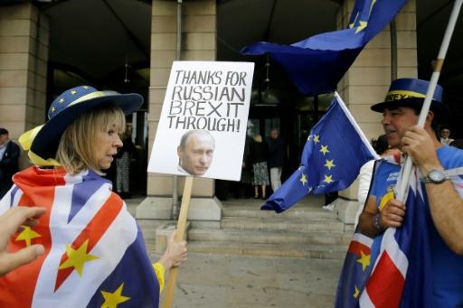 Manifestantes pro Unión Europea protestan contra el Brexit aprovechando una audiencia sobre noticias falsas que tenía lugar en el Parlamento Británico el 11 de junio de 2018 afp_tickers