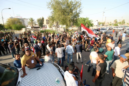Los manifestantes ondeaban banderas de Irak, entre eslóganes en los que calificaban de «ladrones» a los políticos del país.