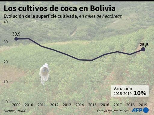 Bolivia registró en 2019 un incremento de 10% de sus cultivos de hoja de coca respecto a 2018, según el informe de una agencia de la ONU difundido este miércoles, aumento que el gobierno atribuyó a la gestión del expresidente Evo Morales.