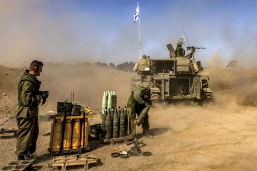 Un soldado israelí proporciona proyectiles de artillería a un lanzador que dispara desde una posición en el sur de Israel, cerca de la frontera con la Franja de Gaza, el 6 de noviembre de 2023 afp_tickers