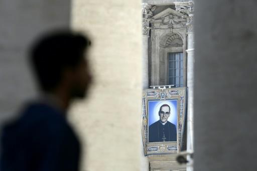 Un tapiz con el retrato del arzobispo salvadoreño Óscar Romero, en la fachada de la basílica de San Pedro del Vaticano, el 13 de octubre de 2018 afp_tickers