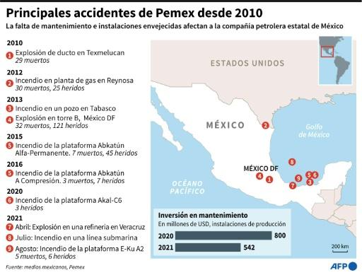 El 27 de octubre de 2013 se desató un incendio en un pozo en Tabasco (sur), y el 1 de abril de 2015, otro en una plataforma del Golfo de México que dejó siete fallecidos. El 7 de febrero de 2016 hubo una conflagración en la misma zona que mató a tres personas.