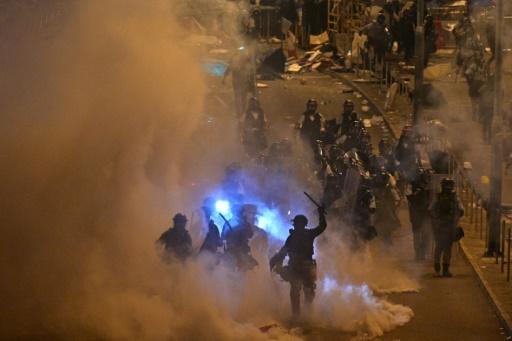 Poco antes de la tradicional ceremonia de izamiento de las banderas de China y Hong Kong por el aniversario de la retrocesión del 1 de julio de 1997, la policía cargó contra los manifestantes. Un manifestante sangraba en la cabeza, constató un periodista de la AFP.
