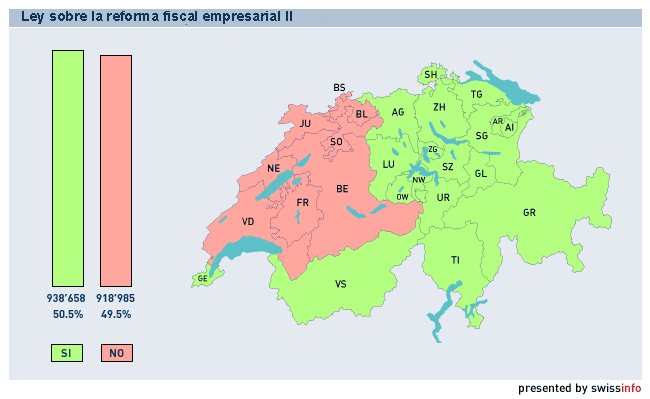 El escrutinio fue incierto hasta el final. Por 50,5% de los votos fue aceptada la propuesta gubernamental para aligerar las cargas impositivas empresariales.