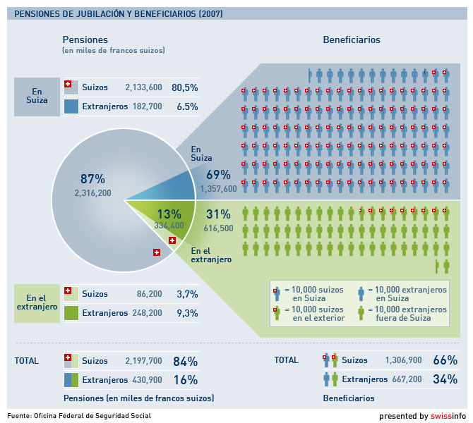 En lo que se refiere a las pensiones en caso de invalidez, Cueni subraya que los receptores de este tipo de seguro deben vivir en Suiza y haber pagado las contribuciones a este sistema de modo regular en los últimos tres años.