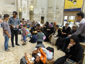 Tan solo el día de hoy llegaron 300 nuevos refugiados a la capital lombarda, en trenes venidos del sur de Italia, de Regio de Calabria, Lecce o Roma y, algunos, en autobuses de largo trayecto. La comunidad siria ocupa toda una entreplanta de la estación.