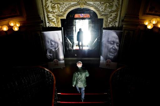 Un hombre sube unas escaleras mirando unas fotografías del expresidente portugués Mario Soares el 8 de enero de 2017 en la sede del Partido Socialista en Lisboa afp_tickers