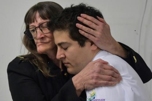 La brasileña Denise Vicentin abraza al doctor Rodrigo Salazar-Gamarra luego de que le implantara una prótesis ocular en Sao Paulo, el 3 de diciembre de 2019 afp_tickers