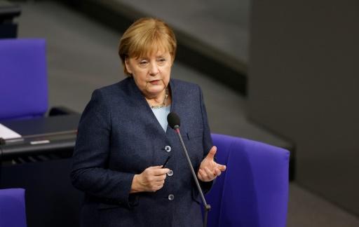 La canciller Angela Merkel contesta a preguntas de los diputados sobre la crisis del coronavirus desde su escaño del Parlamento alemán, el 16 de diciembre de 2020 en Berlín afp_tickers
