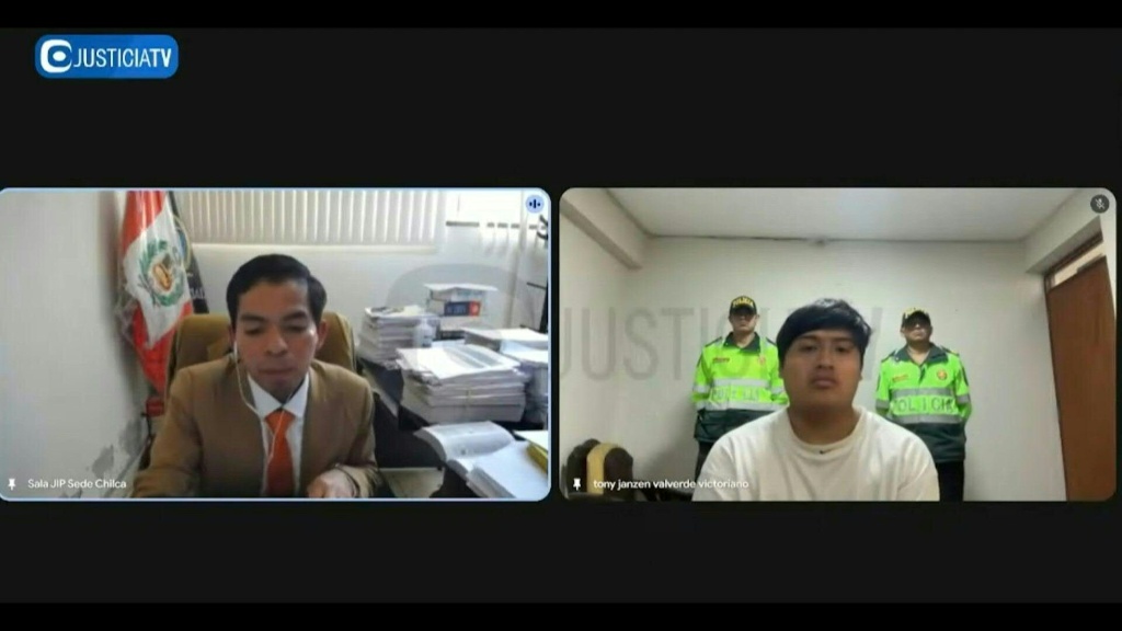 Vestido con una camiseta blanca y custodiado por dos policías, Valverde siguió la audiencia de forma remota en una comisaría en el sur de Lima.