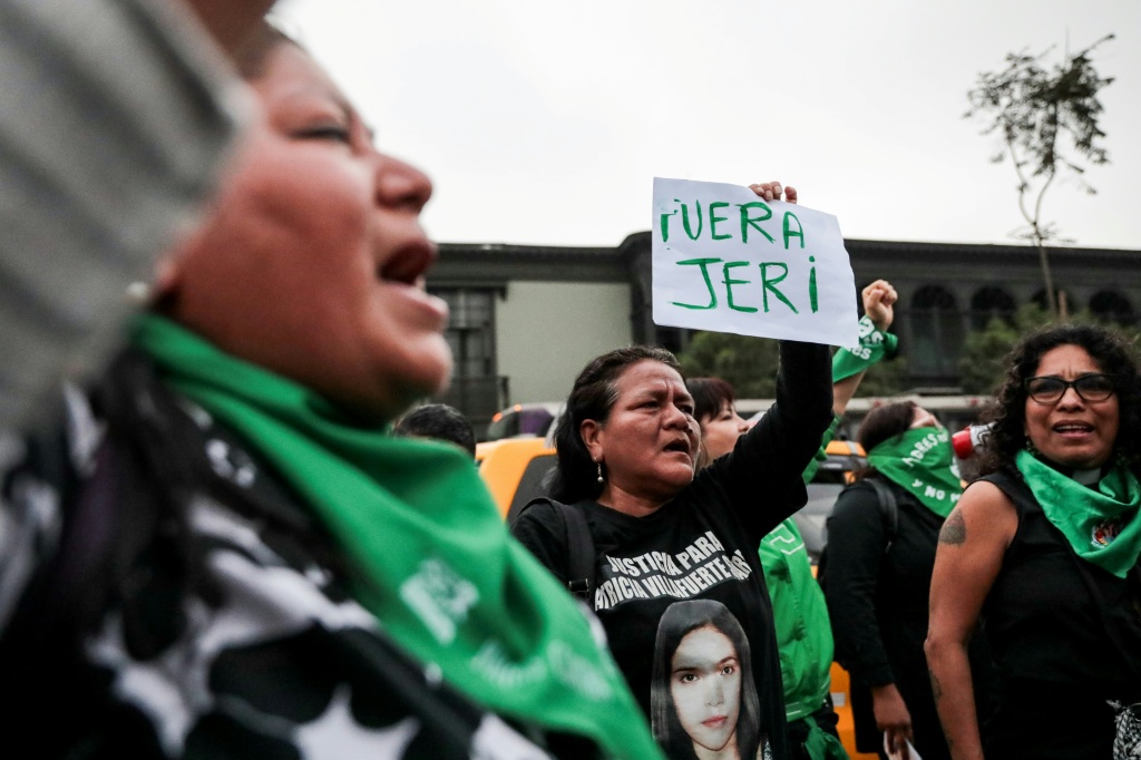 «Fuera Jerí», se leía en varias hojas blancas pintadas de verde que levantaban las manifestantes al mismo grito.