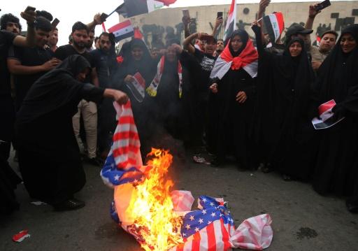 Protestas y banderas estadounidenses quemadas en Irak luego de ataques en Siria