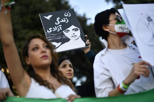 "Vida, mujer libertad", se lee en una pancarta en persa en ena manifestación en solidaridad con las mujeres iraníes el 4 de octubre de 2022 en Barcelona afp_tickers