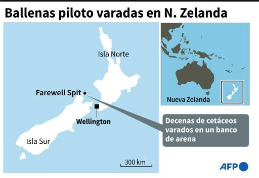 El Ministerio de Conservación (DOC) dijo que las ballenas liberadas formaban parte de un grupo de unos 50 mamíferos descubiertos el lunes por la mañana en Farewell Spit, una lengua arenosa 90 km al norte de la ciudad de Nelson.