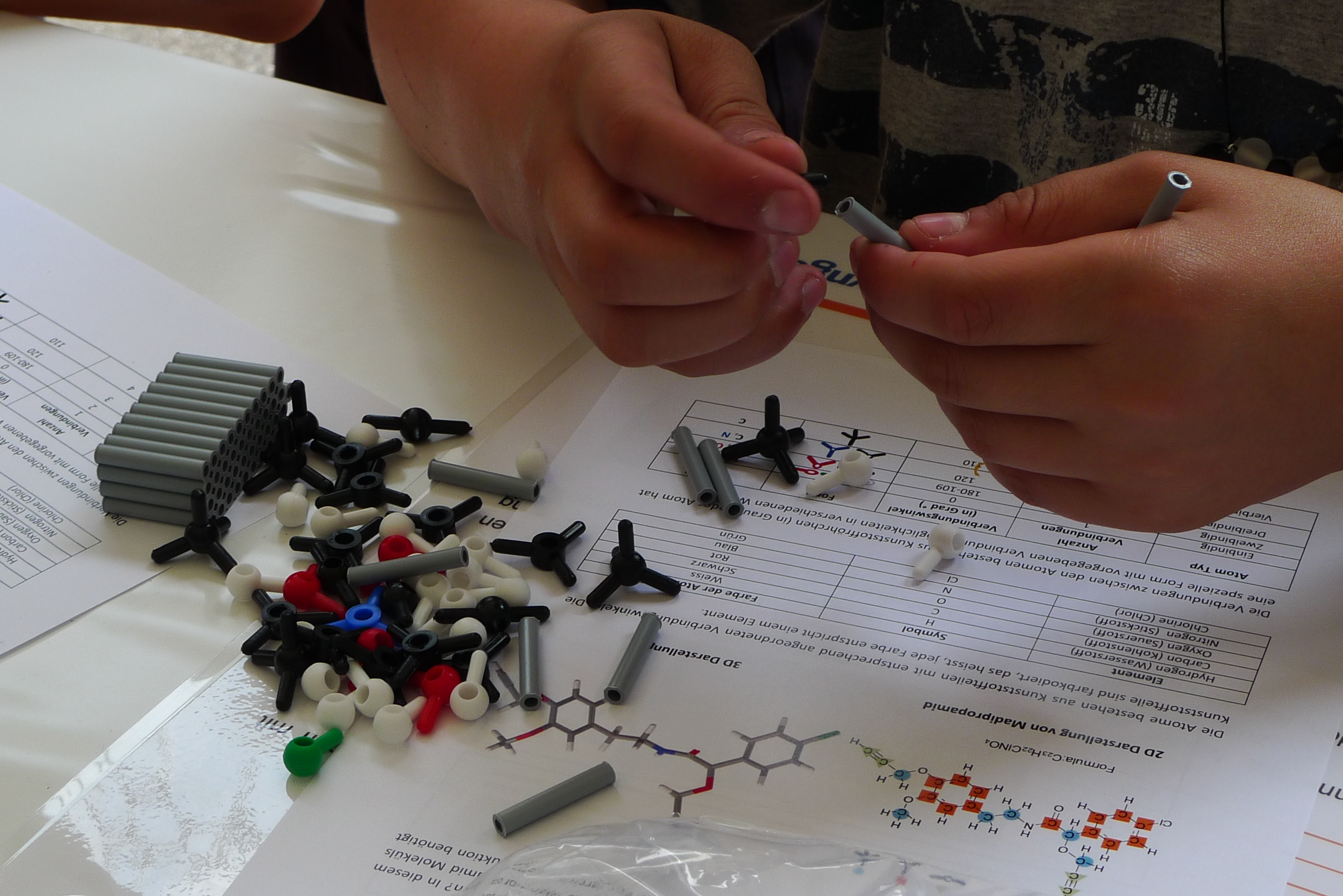 Markus, de 12 años, construye muy concentrado un modelo de moléculas a partir de piezas prefabricadas. Preguntado sobre lo que es una molécula, no sabe responder. Tampoco la asistente con el delantal blanco. Ella viene del sector comercial y debe preguntar a un experto.