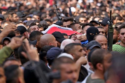 Una multitud participó en Naplusa en los funerales de los palestinos, entre ellos combatientes armados, constataron periodistas de la AFP.