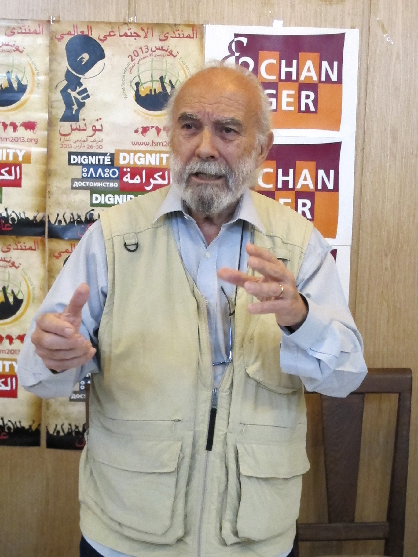 En el marco de este evento internacional, que se realiza en la capital de Túnez, el Premio Nobel Alternativo de la Paz 2006 analiza para swissinfo.ch la dinámica actual del movimiento altermundialista.