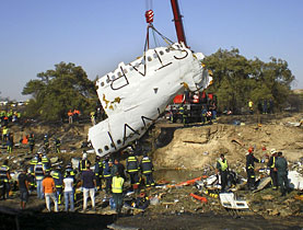 En Madrid, a un día del accidente del avión de Spanair (vuelo KJ5022), las tareas se concentran en la identificación de los cadáveres y en definir las causas del peor accidente aéreo vivido en España en el último cuarto de siglo.