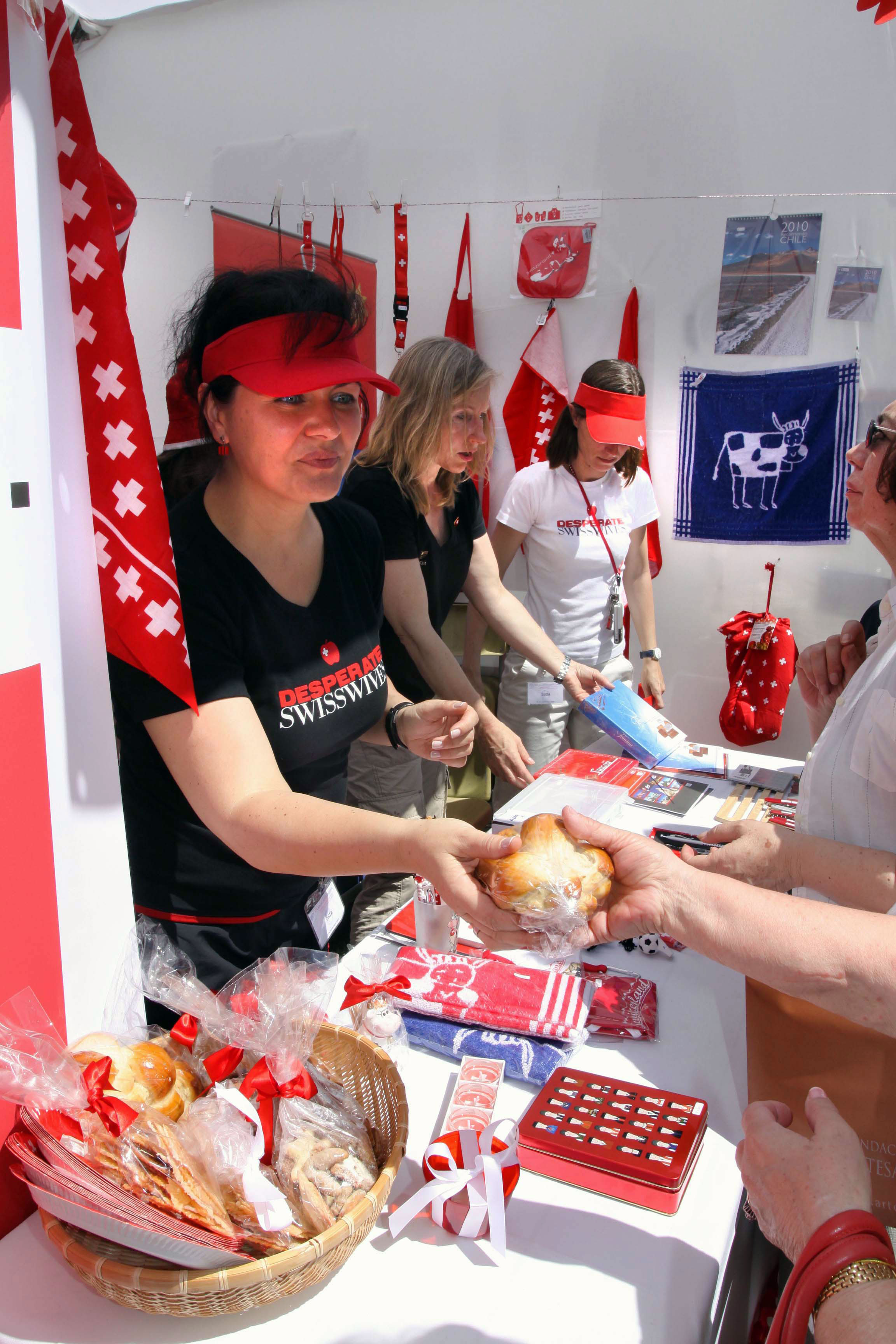 Tazones, ceniceros, encendedores, llaveros, lápices, gorros y sandalias con la bandera suiza fueron rápidamente adquiridos por los visitantes. Y a pesar de que las altas temperaturas no se asemejaban, en absoluto, a las de la Confederación, en el pequeño espacio que acogió a las mujeres vinculadas con la Embajada Suiza en Chile, reinó el entusiasmo y la buena disposición. “Si hasta Eva, la hija de 5 meses de nuestra primera consejera Agnès Christeler Troesch se integró al equipo para ayudarnos!”, destacó Fisher.