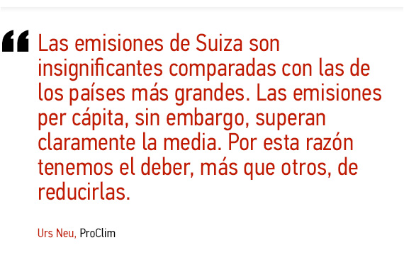 Una persona en Suiza emite cerca de seis toneladas de CO2 al año. En realidad, la cifra es más elevada, anota Urs Leu, del foro suizo sobre el clima y el cambio climático (ProClim). “Hay que tomar en consideración también las emisiones que generan los productos importados”.