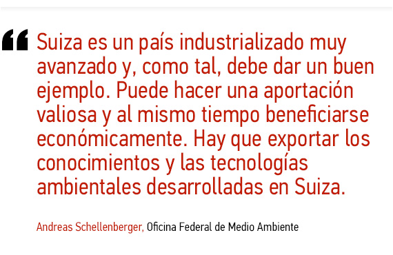 Suiza siempre se ha mostrado muy comprometida en las reuniones internacionales sobre emisiones de CO2. Los pequeños países pueden dar ejemplo, sobre todo, en los ámbitos político y técnico. Así, Australia, o sea un país pequeño en términos de emisiones, ayudará a China a desarrollar un sistema de intercambio de cuotas de emisiones”.