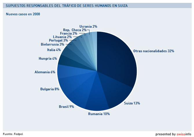 Según la Policía Federal helvética (Fedpol), Suiza no sólo es un país de tránsito, sino también de destino del tráfico de seres humanos para fines de explotación sexual.