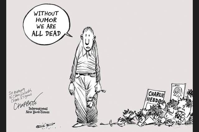 «Sin humor, estamos todos muertos». Homenaje del caricaturista suizo Patrick Chappatte a las víctimas de los atentados contra ‘Charlie Hebdo’. Patrick Chappatte