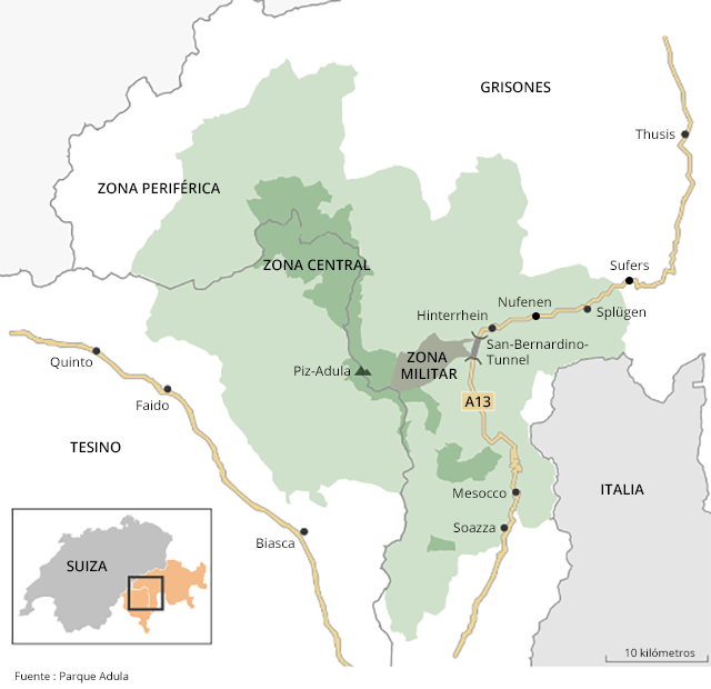 Los promotoresEnlace externo del parque nacional conocen esos argumentos y están bien preparados. Así, el presidente de la Asociación Adula, Fabricio Keller, explica que el parque no estará en la categoría de reservas naturales, a diferencia del primer parque nacionalEnlace externo que nació en Engadina a principios del siglo pasado. Solamente la zona central está clasificada como área protegida, la zona de los alrededores es considerada como una mera “reserva de recursos a proteger”. En ella, prácticamente nada cambiaría para la población local.